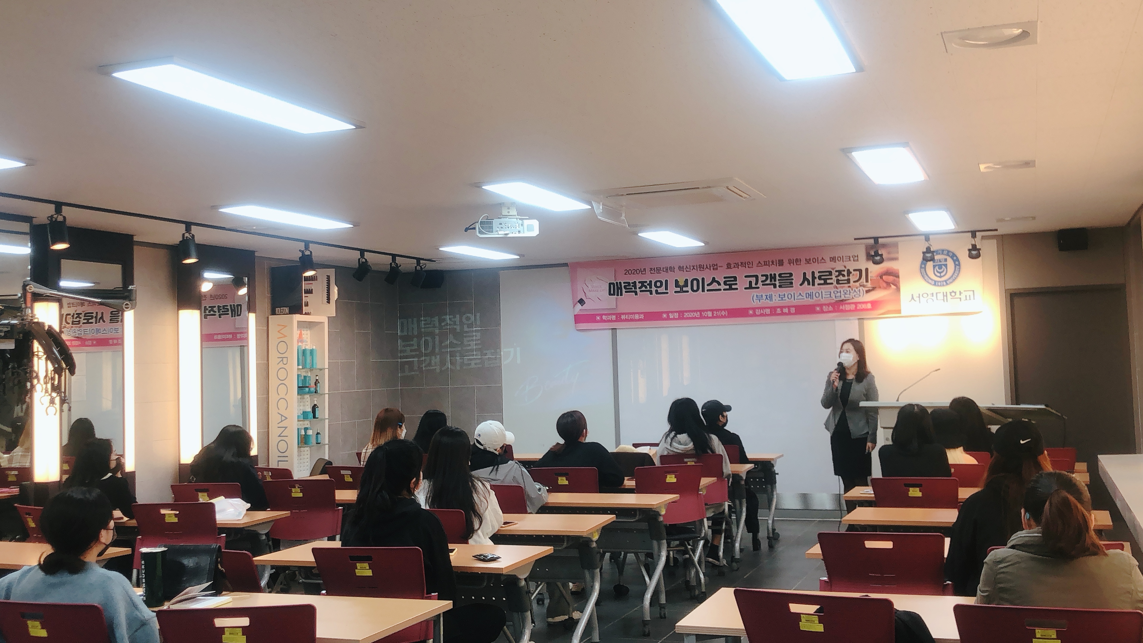 전문대학 혁신지원사업으로 효과적인 스피치를 위한 보이스 메이크업 "매력적인 보이스로 고객을 사로잡기" 를 특강하였습니다.