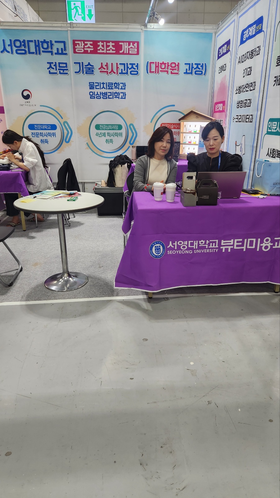 ○ 박정수 학과장님은 대학원 초대원장님과 뷰티미용과 학과장을 함께 겸직하고 있어서 동시에 같은 부스에서 홍보를 할 수 있어서 서영대학교를 알리는데 큰 힘이 되었다고 전했다.