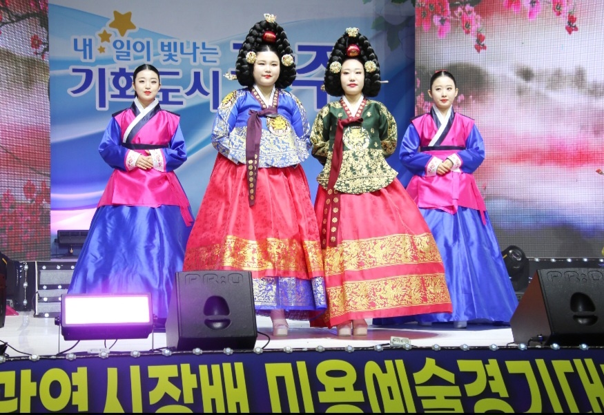 서영대 뷰티미용과 고전머리 모델로 총 8명이 광주시장배 대회에서 피날레 장식을 하다.