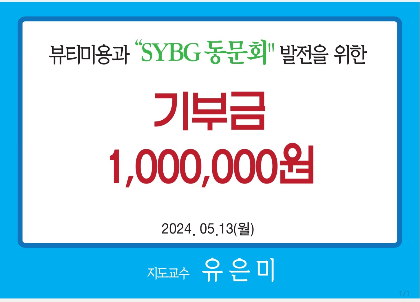 ○ 유은미 지도교수는 본교 모교 졸업생으로서 사제지간을 넘어 사석으로는 선, 후배가 되는 야간 동문회 발전을 위한 소정의 금액 1,000.000원을 기부해 주셨다.