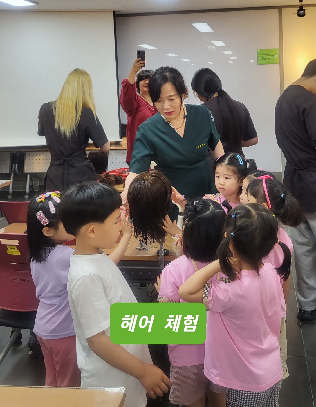 ○ 헤어, 피부, 네일 수업시간에 유치원 아이들이 참관을 해 직접 수업에 참여를 하는 뜻 깊은 시간을 가졌다.