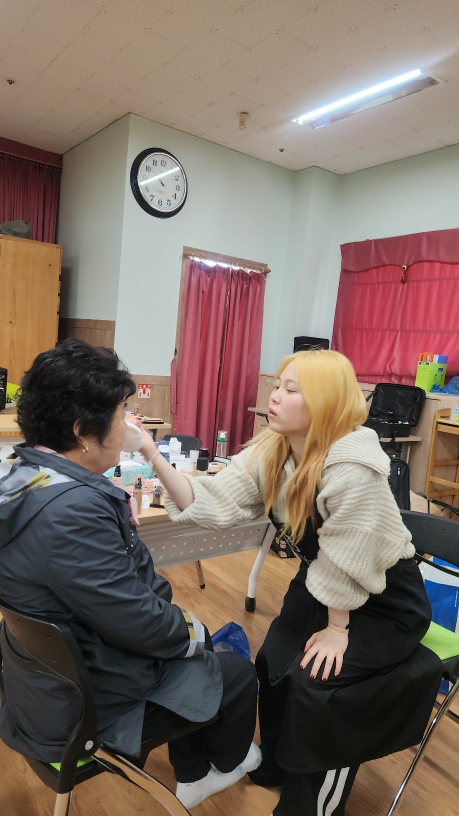 광주공원 노인 복지관에서 주최하는 행복나눔 서포터즈에  뷰티미용과 1~2학년이 참여해 어르신들의 인생사진관 촬영에 도움이 되는 메이크업을 전담했다.