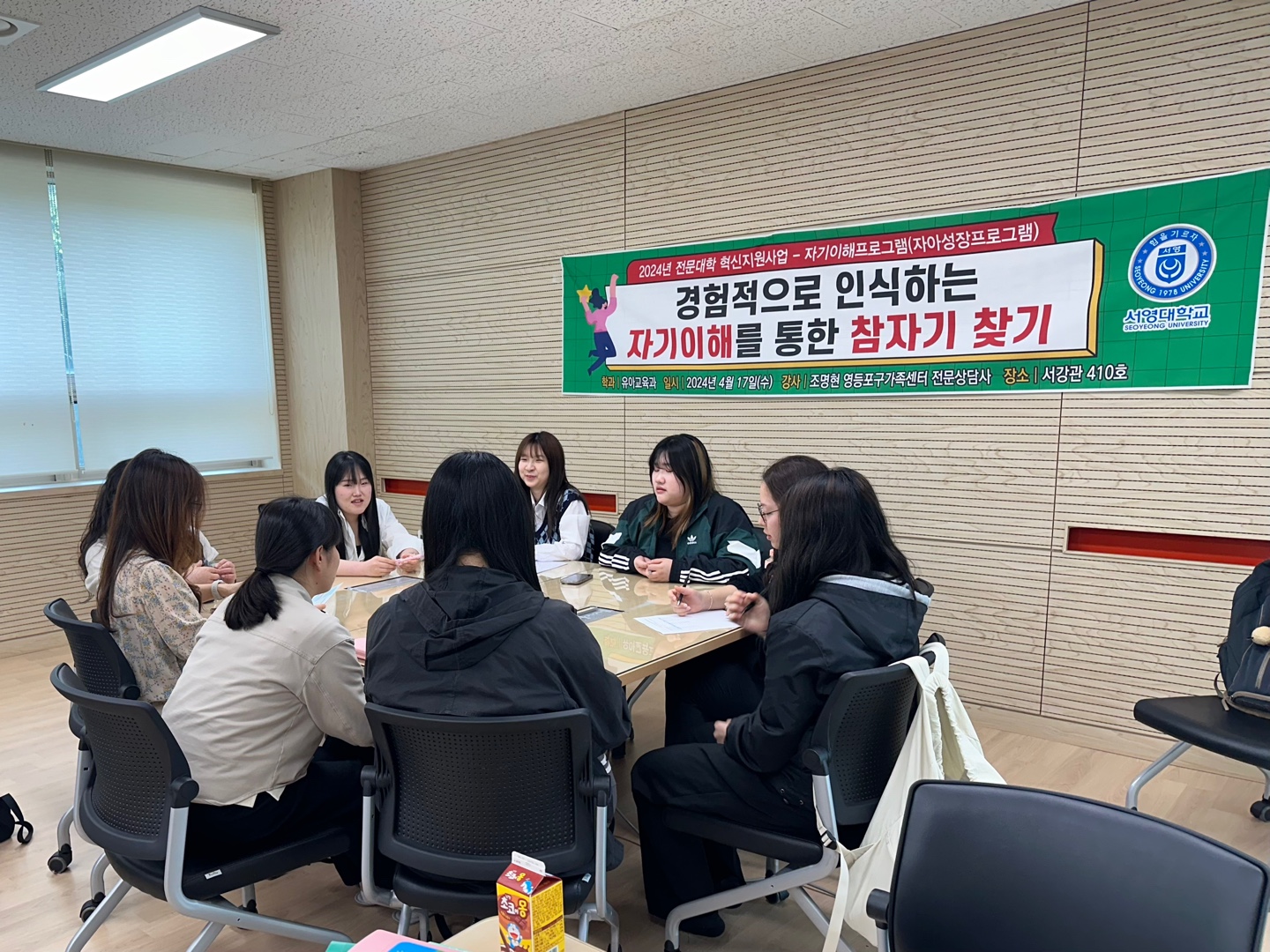 - 내용 : “나”를 탐색하는 시간을 갖고 남들이 보는 “나”와 내가 보는 “나”를 생각하며 자아성찰하는 시간을 가졌습니다. 자신을 이해하고 존중하며 진짜 “나”에 대해 탐색하는 시간을 가졌습니다. 이러한 시간을 통해 자기 자신을 사랑하는 방법과 이해하는 방법을 배울 수 있어서 뜻깊은 시간이었습니다.
