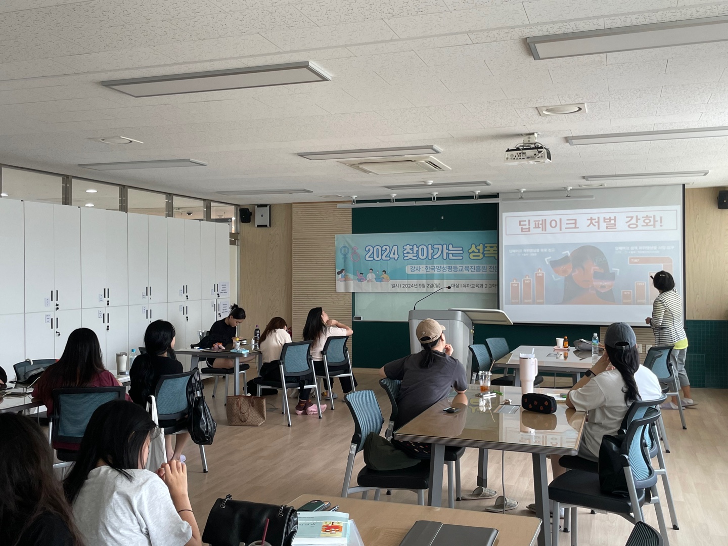- 내용 : 강의를 통하여 사회 속에 숨겨진 성별이분화와 차별 및 폭력, 디지털성범죄 등 다양한 성인지 감수성에 대해 살펴보았습니다. 성별 간의 차이로 인한 일상생활 속에서의 차별과 유리함 및 불리함을 생각해보고, 실제 상황에 어떻게 대처해야하는지 알 수 있는 시간이었습니다.
