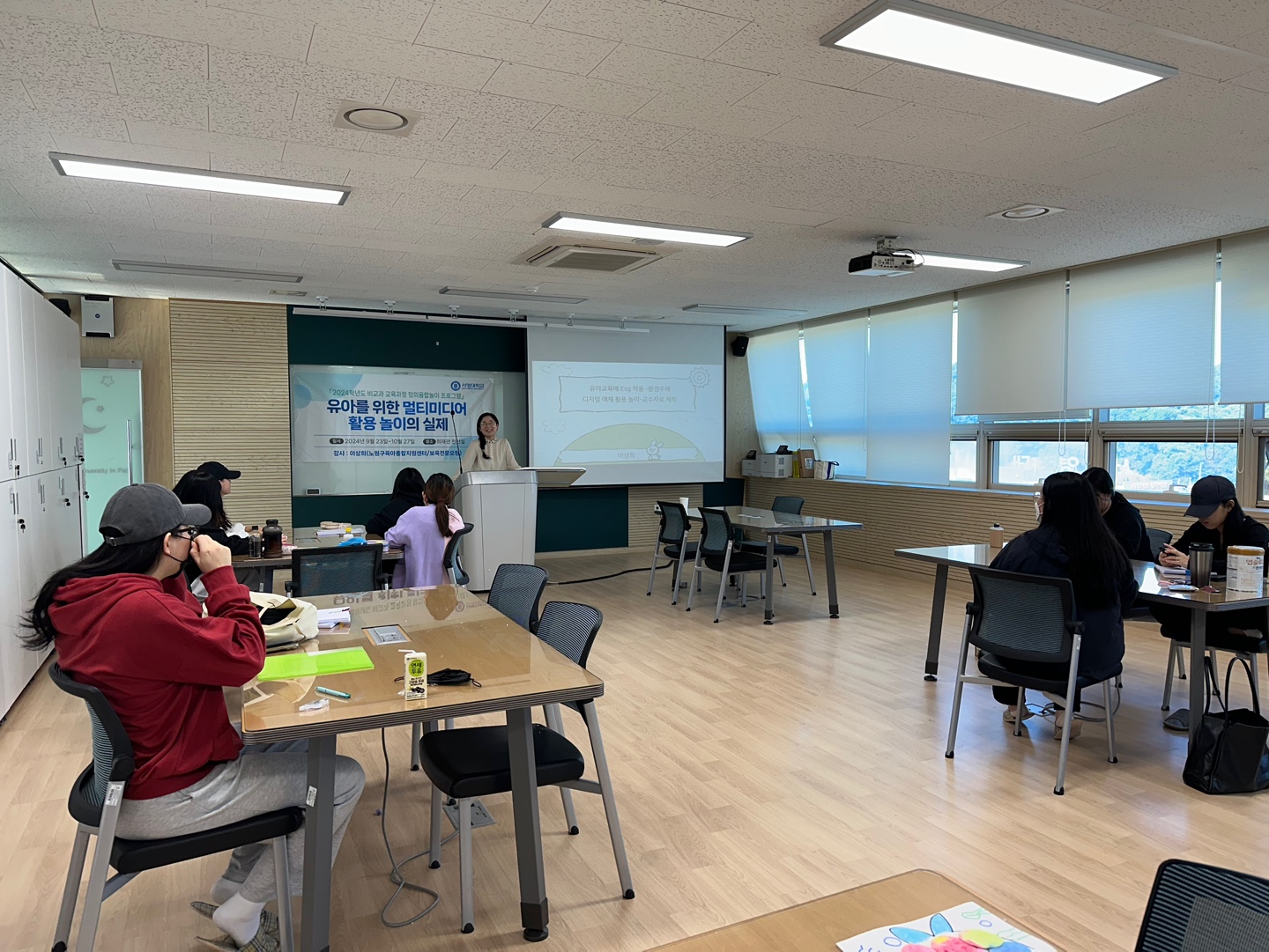 - 내용 : 지속가능발전교육의 필요성을 인지하고 놀이중심 교육에서의 지속가능발전교육 사례를 살펴보았습니다. 사례를 살펴보며 유아 발달과 멀티미디어의 특성, 유아콘텐츠 및 동화 구성 시 주의사항에 대해 알아본 후 지속가능발전교육의 주제망을 선정해 보는 시간을 가져보았습니다.