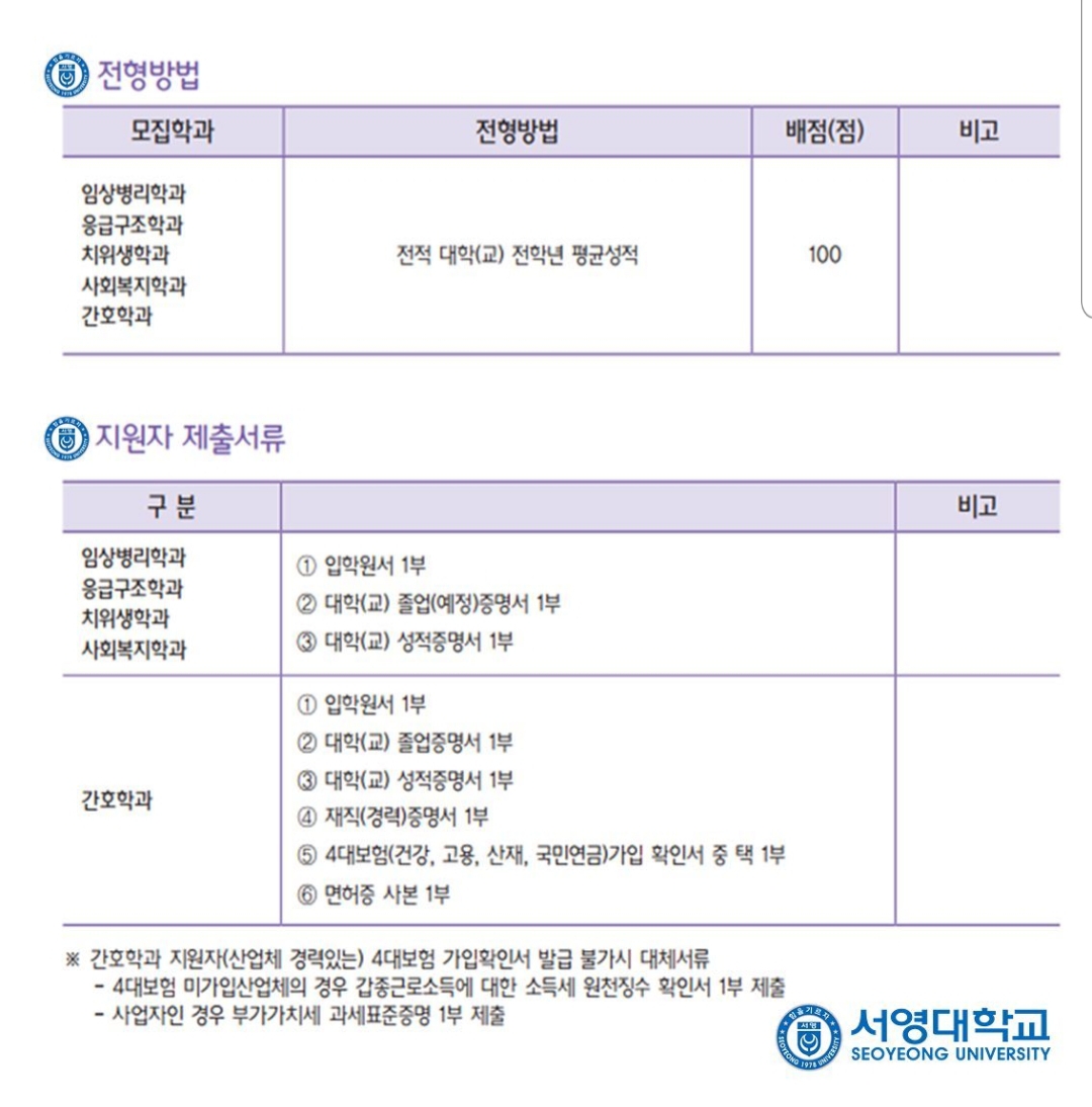 제출서류: 입학원서,졸업증명서,성적증명서