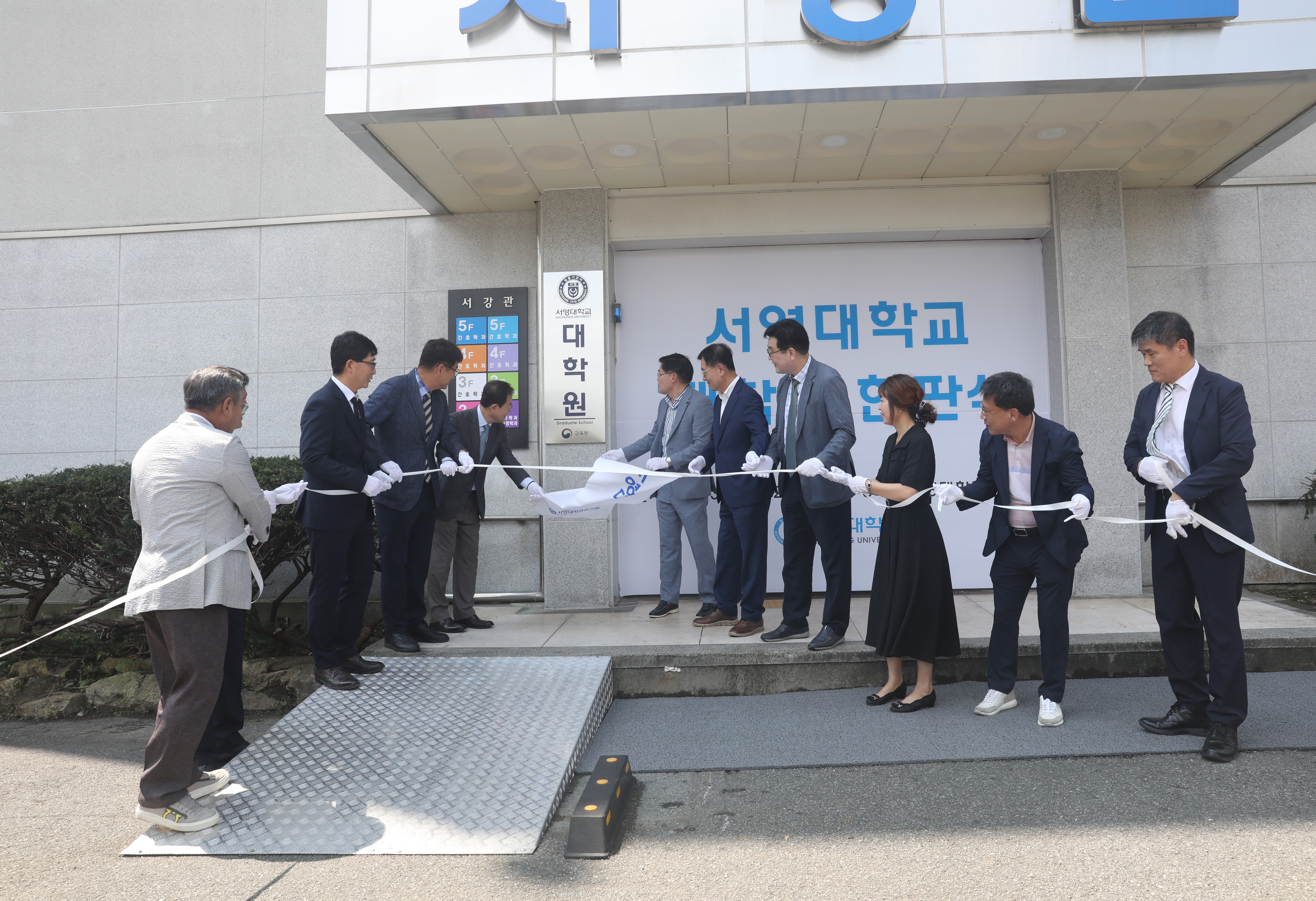 ○서영대학교가 21일 교내 서강관1층에서 김정수 총장을 비롯해 박성수 광주전남지역혁신플랫폼 총괄운영센터장,학교법인 서강학원 임직원,광주캠퍼스 및 파주캠퍼스 주요 보직자 등 내외귀빈이 참석한 가운데‘서영대학교 대학원’현판식을 가졌다.
