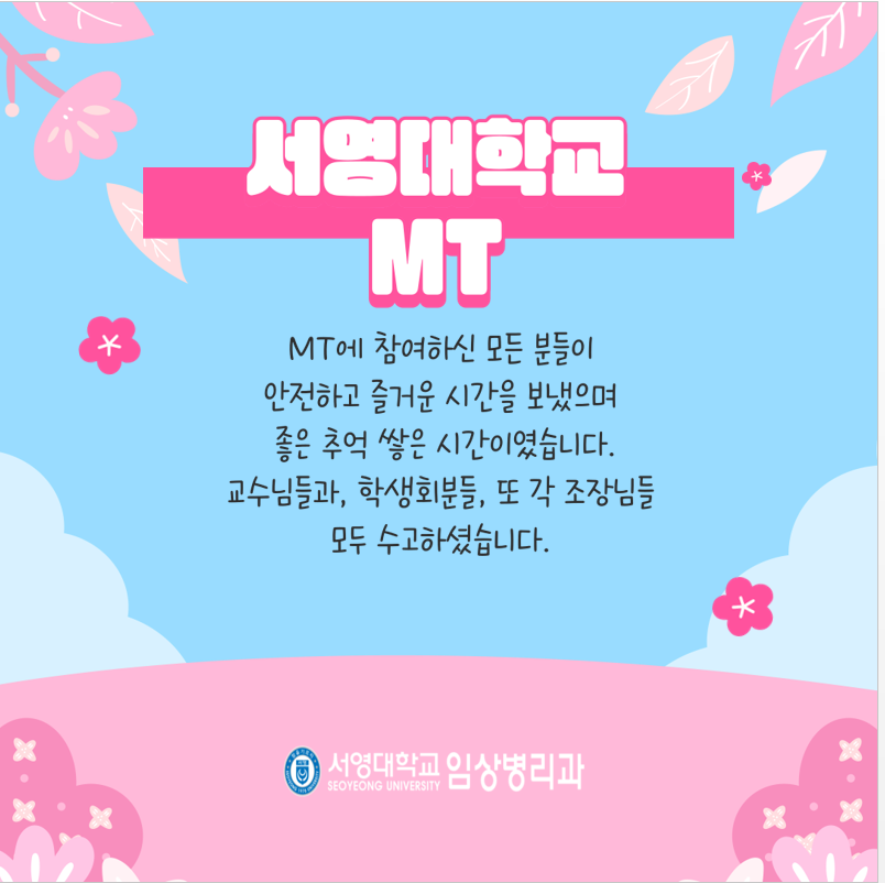 연합 MT를 통해 즐거운 추억을 남기고, 최강임상인으로 하나됨을 느끼는 의미있는 시간이였습니다.