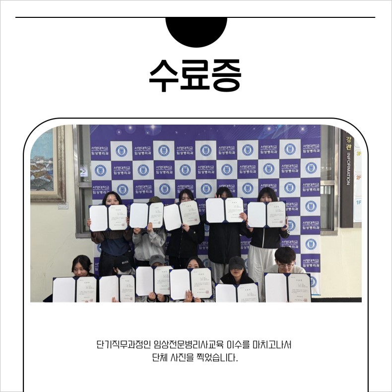 서영대학교 임상병리과 20명의 2학년 학생들을 대상으로 단기직무과정 임상전문병리사 (Specialized Medical Technologist 또는 Specialized Clinical Laboratory Technologist) 교육을 실시하였습니다.