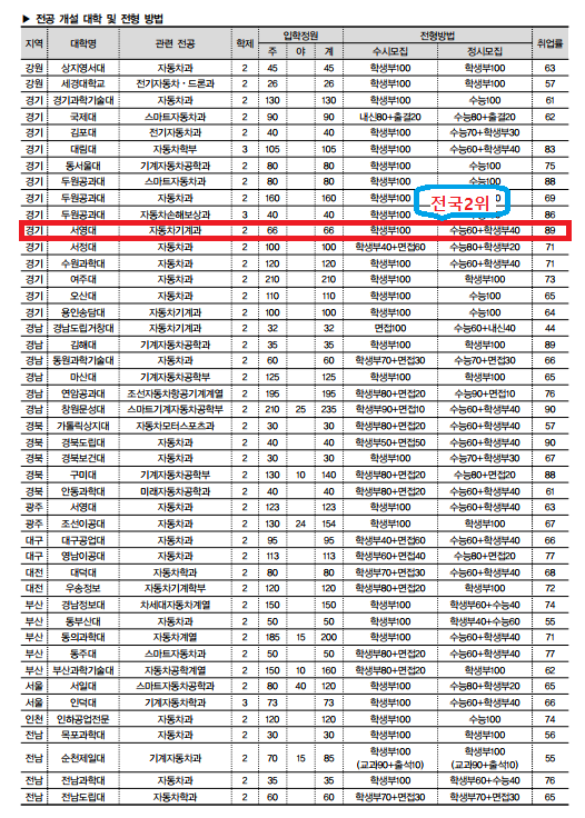 한국전문대학교 교육협의회 "2020 전문대학 전공별 입학상담자료집" 사항 중 본 자동차기계과 취업률이 전국 2위(취업률 3위)를 하였습니다. 모든 졸업생, 재학생, 교수진의 열정과 노고로 만들어진 값진 성과인 것 같습니다. 특히 수도권에서는 TOP 1이라 더욱 값진 것 같습니다.(자료. 2018년 12월 31일 기준)