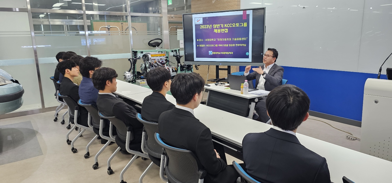 2023년 5월 10일 KCC오토그룹 정*환  서비스총괄 전무이사님께서 하계 인탄십 채용면접을 진행하였습니다.