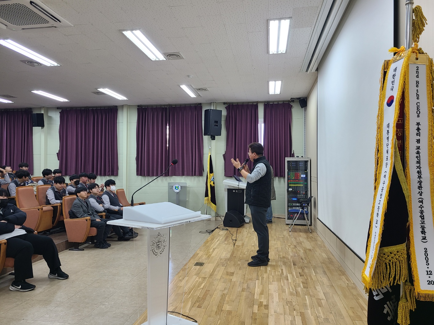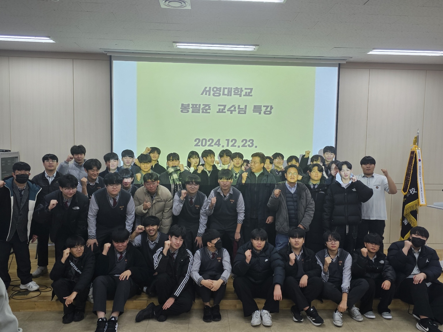 지난 2024년 12월 23일 서영대학교 미래자동차과 봉O준 학과장님과 김O태 교수님께서 여수공업고등학교 자동차를 방문하여 미래 자동차 분야 진로를 꿈꾸는 학생들에게 유익한 시간을 선사했습니다.