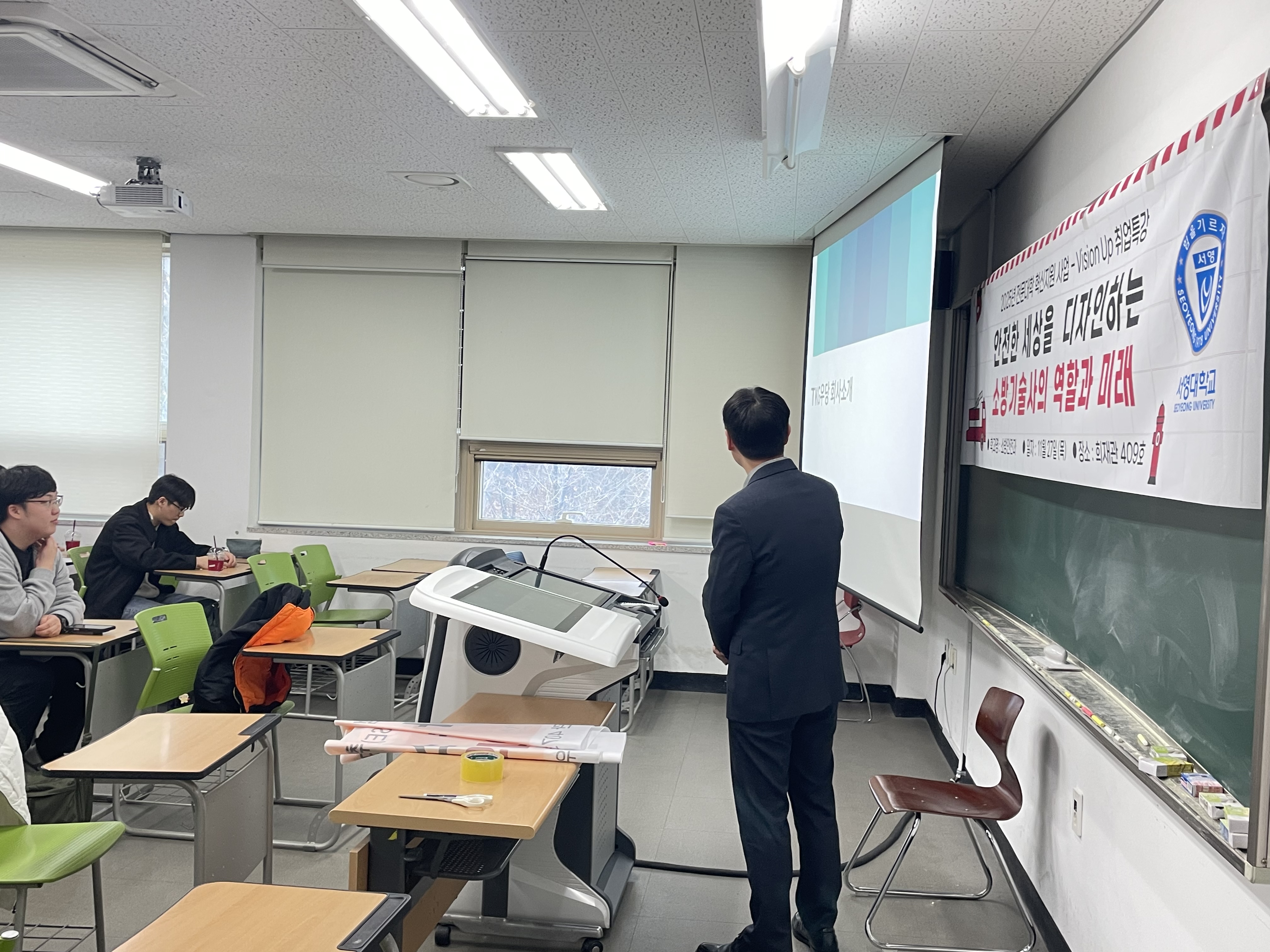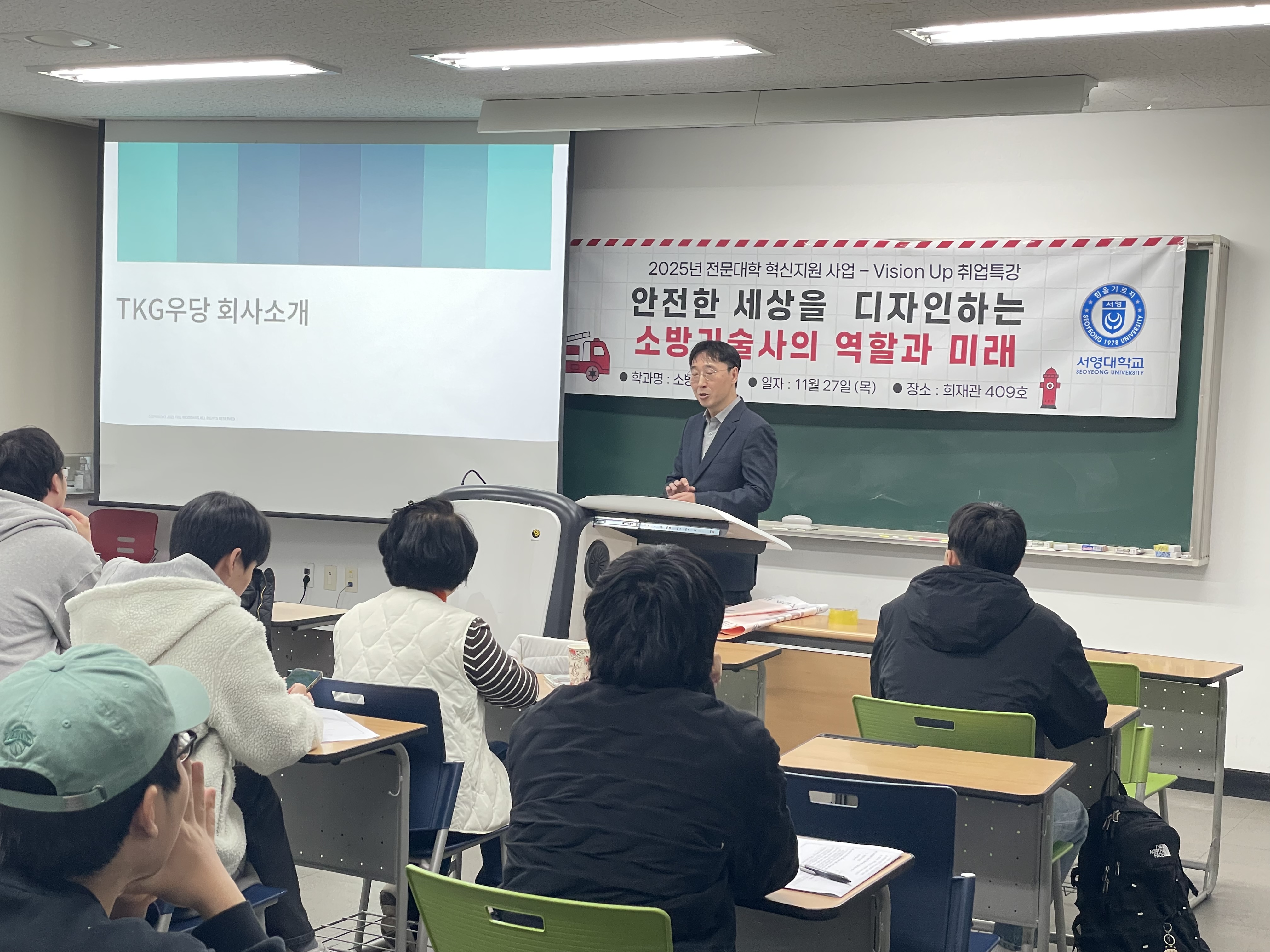 소방기술사 ( TKG 우당 _ 오성수 부장님) 을 초청하여 소방산업의 미래와 소방기술자의 역할과 비전을 함께 나누어 주셨어요 .