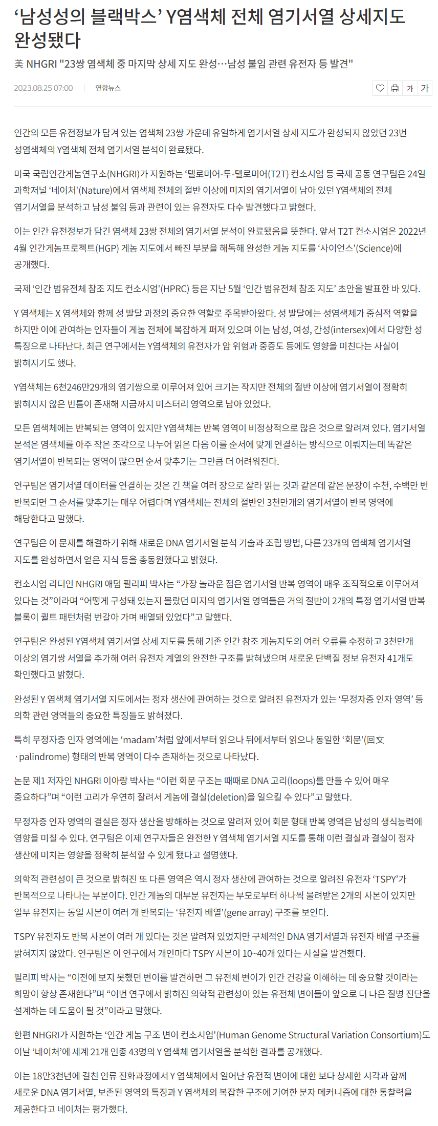 '남성의 상징' Y염색체 완전 해독성공하다,에 대한 상세정보