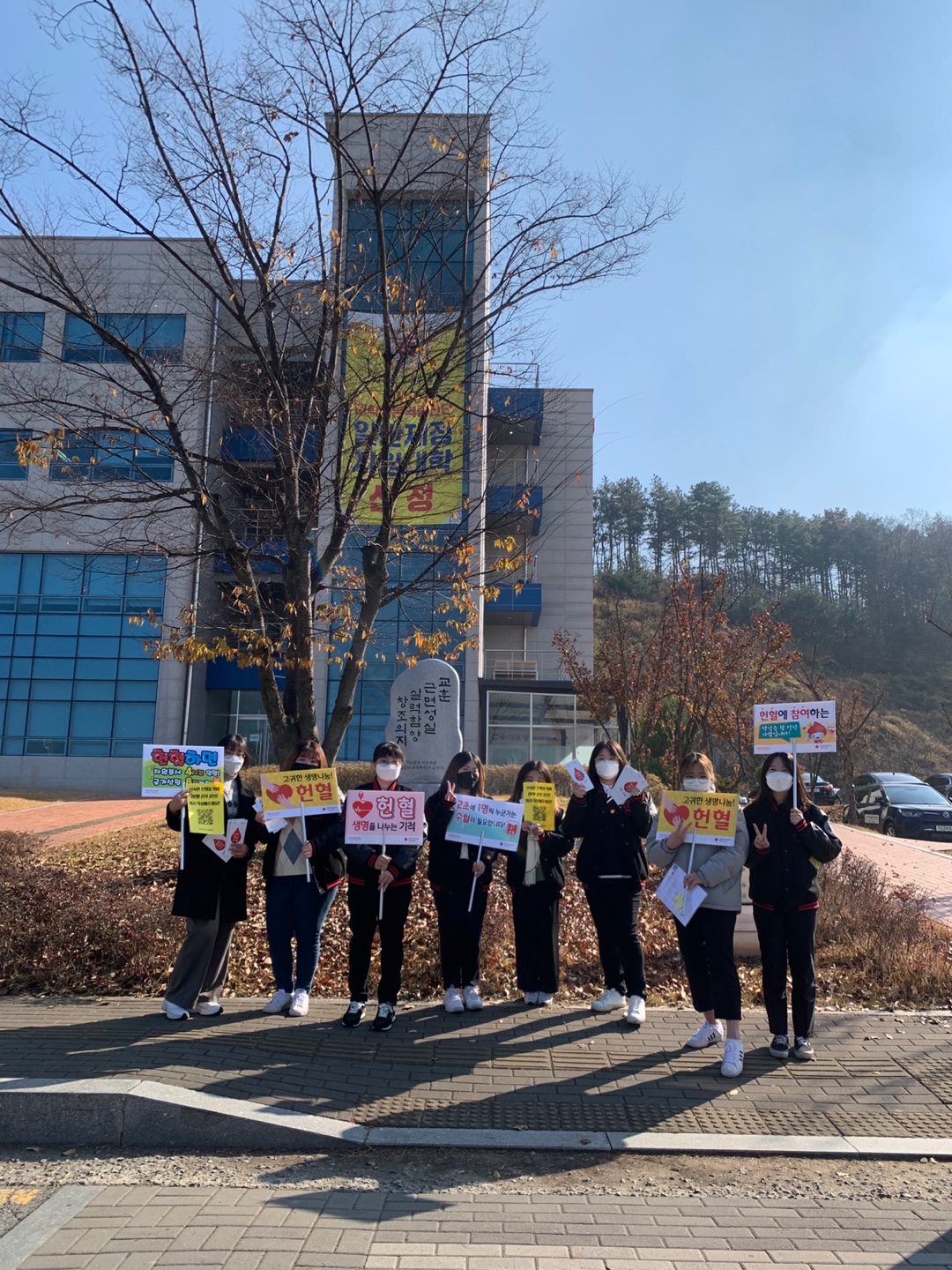 본 업무 협약은 지역 발전과 미래인재육성, 국민생명보호를 위해 양 기관이 상호 협력 체계를 구축하고, 생명의 소중함을 전하는 현혈 활동의 적극 실천을 통해 건전한 헌혈 문화를 정착하고 확산시키며, 학생봉사활동을 활성화하려는 목표를 가지고 우리 학과가 추진하여 마련한 자리다.