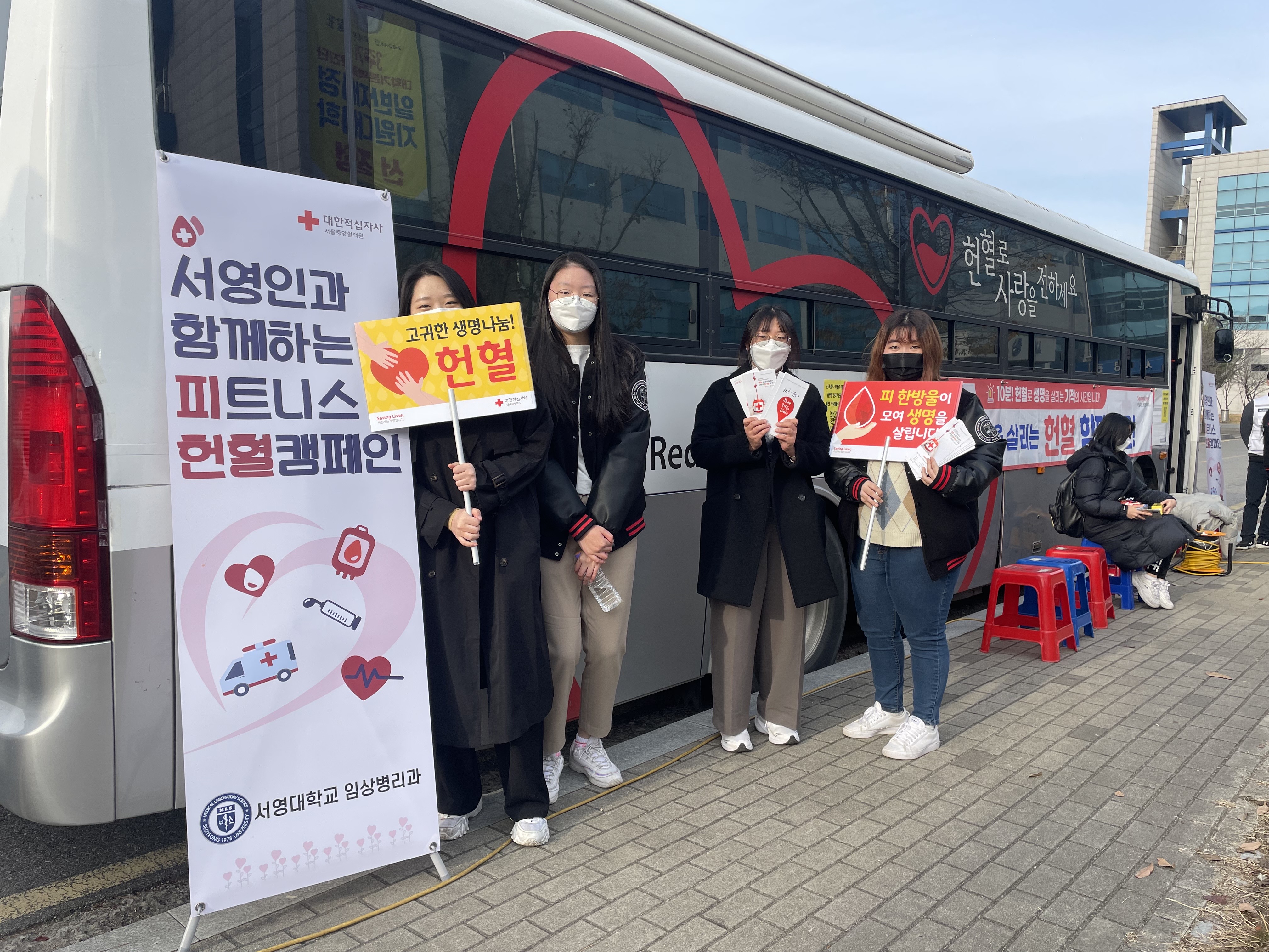우리 학과는 17일, 대한적십자사 서울중앙혈액원(원장 김동석)과 상호업무협약식을 진행하고 교내에서 "서영인과 함께하는 피트니스 헌혈캠페인"을 실시하였다.