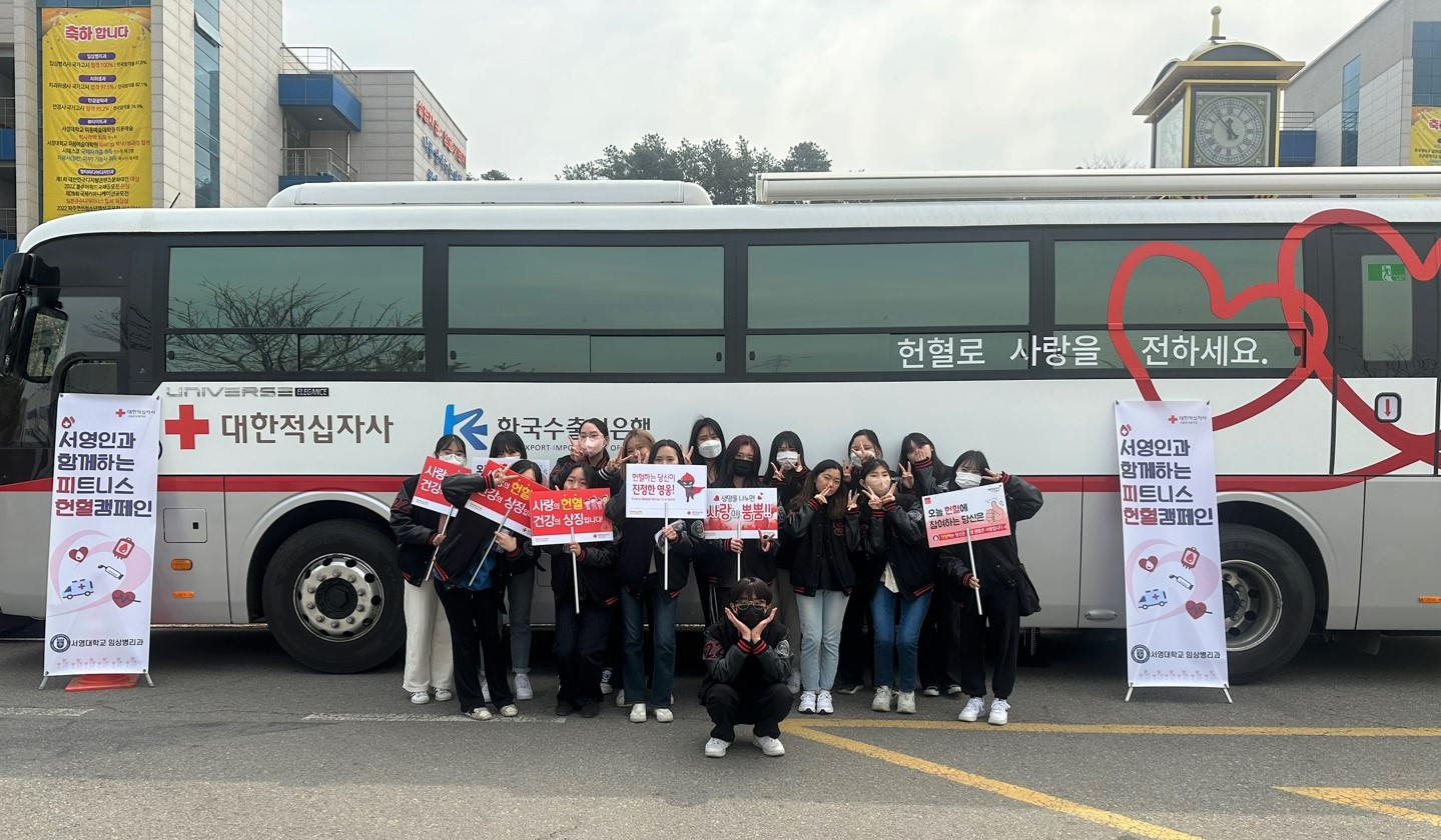 "서영인과 함께하는 피트니스 헌혈캠페인"은 생명의 소중함을 전하는 현혈 활동의 적극 실천을 통해 건전한 헌혈 문화를 정착하고 확산시키며, 학생봉사활동을 활성화하려는 목표를 가지고 우리 학과가 추진하고 있는 프로그램이다.