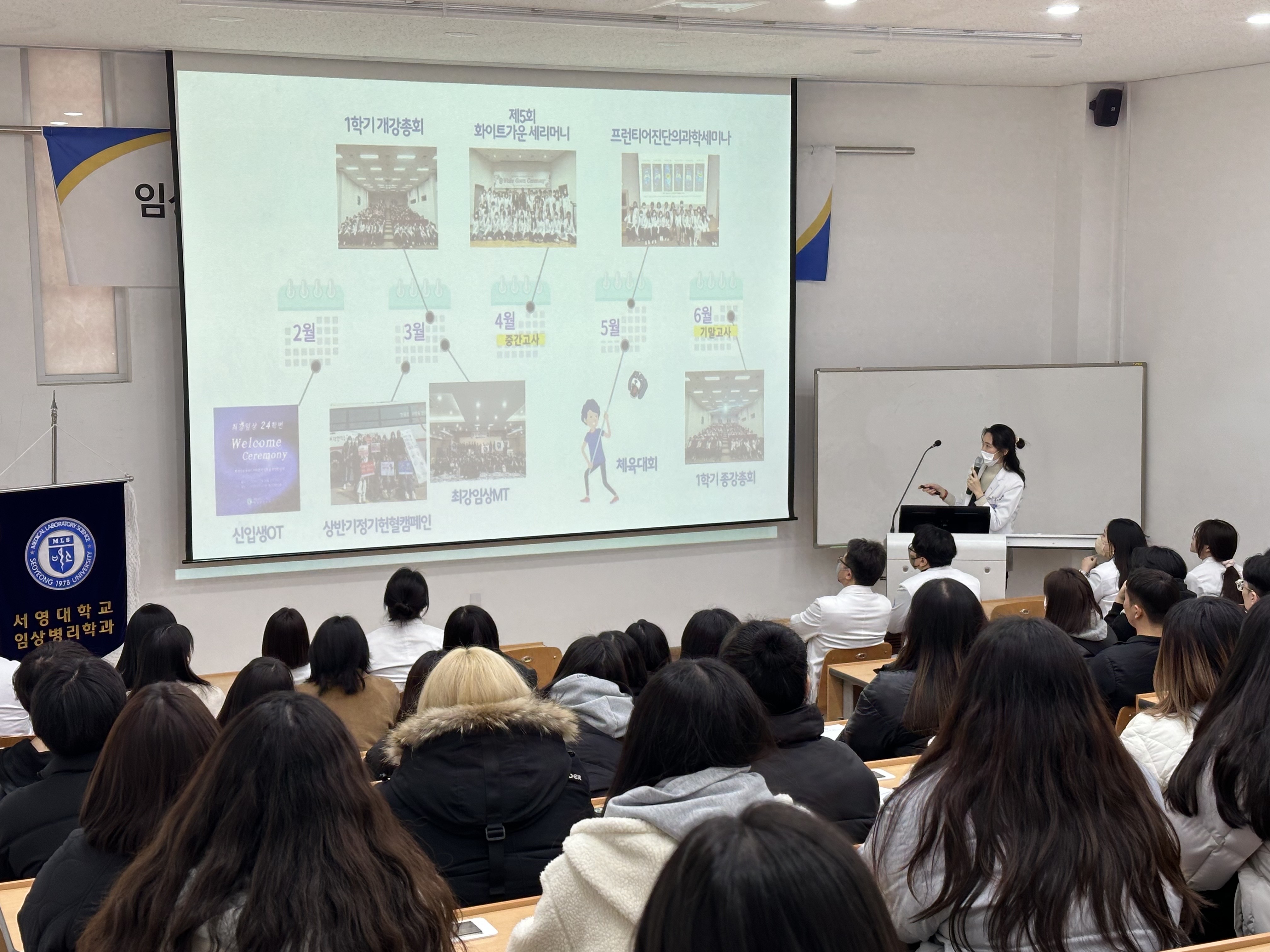 최강 임상 4기 학생회(회장 22학번 정바다)가 준비한 이번 신입생 오리엔테이션에는 67명의 신입생들과 이지웅 학과장, 김아름 교수, 이민정 교수, 이경배 교수 등이 참석하였다. 4기 학생회장 정바다 학생의 사회로 진행된 신입생 WELCOME CEREMONY는 24학번 신입생을 환영하는 따뜻한 인사말과 함께 문을 열었다.