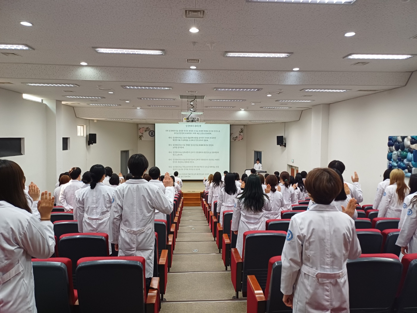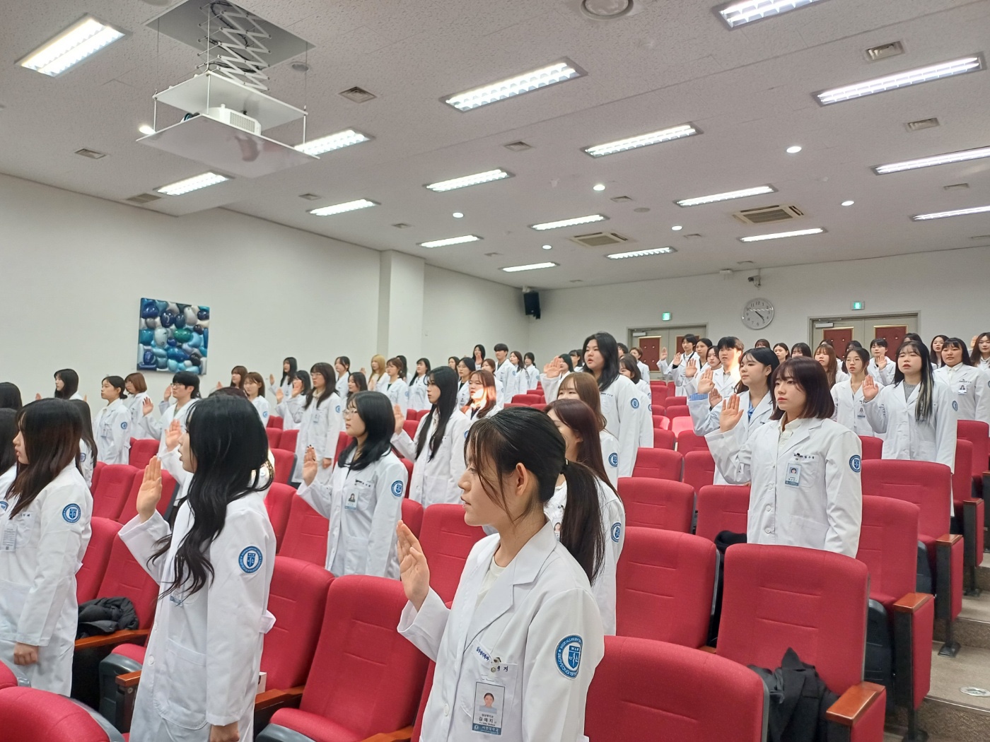 총 82명의 예비 임상병리사들이 참석한 가운데, 각자의 이름이 새겨진 화이트 가운과 명찰이 수여되었으며, 학생들은 ‘임상병리사 윤리강령’을 낭독하며 박애와 봉사의 정신으로 국민 건강 증진에 기여할 것을 다짐했다.