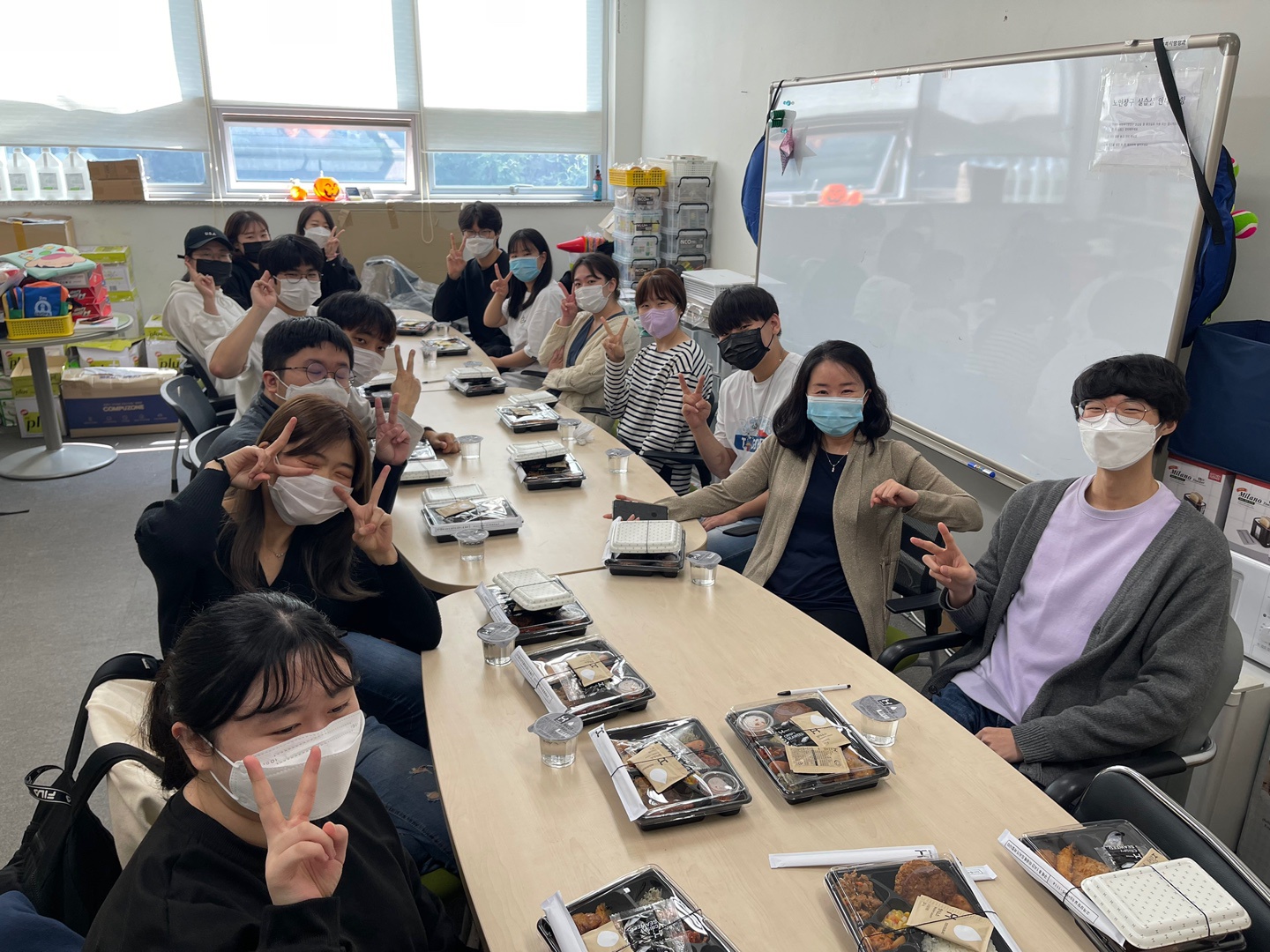 안녕하세요 서영인여러분~10월 14일 김효선 학과장님과 1,2학년 학생회가 모여 뜻깊은 점심시간을 보내는 하루였습니다. 코로나로 인해 함께할수 없었는데 이번에 시간을 내서 시험기간을 앞두고 만남의 시간을 가졌습니다. 내년에는 함께할 수 없는 2학년 선배들의 빈자리를 채우게될 1학년들에게 든든한 조언과 진심어린 응원의 말을 들을 수 있었던 보람있는 시간이었습니다. 내년에도 열심히 일하며 좋은 모습을 보여드리는 학생회가 되겠습니다.
