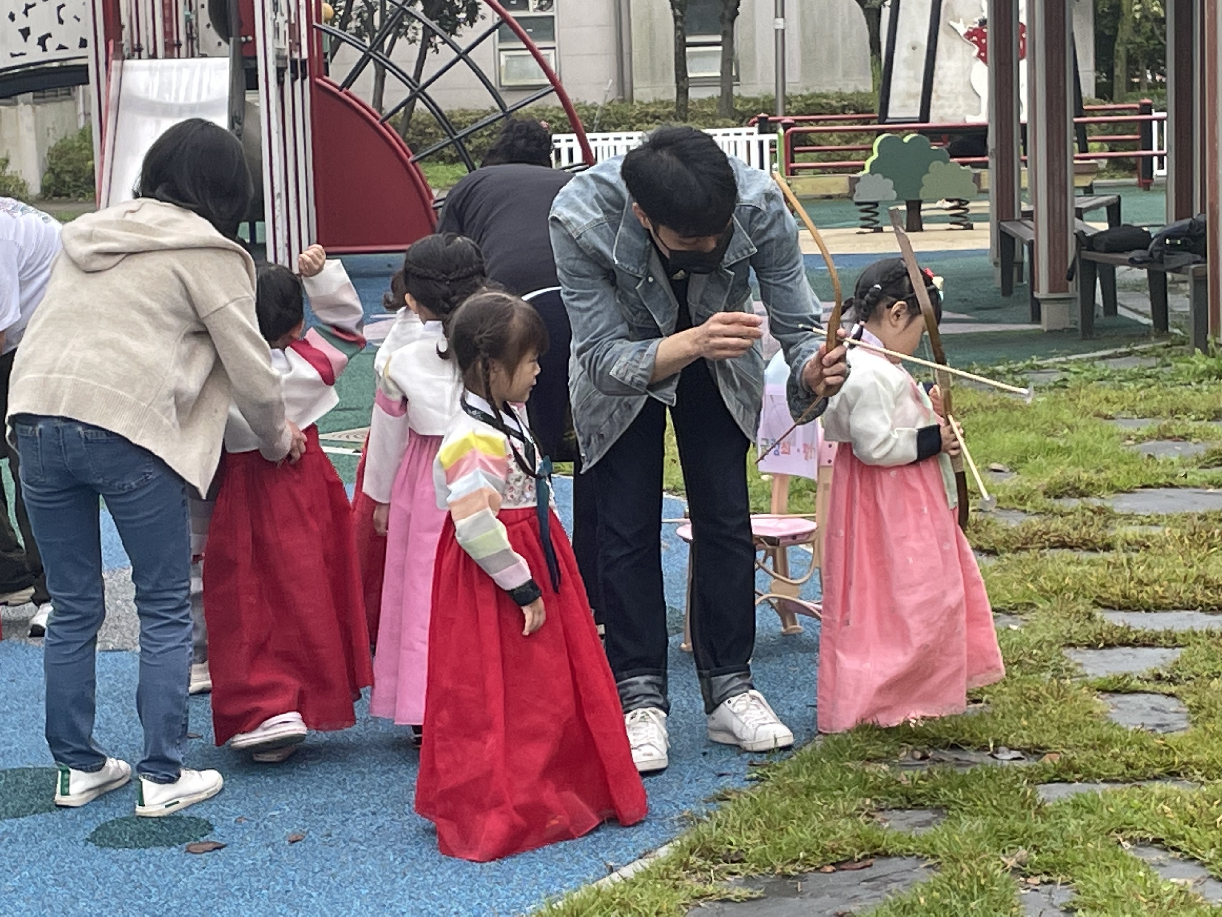 전통놀이체험(활쏘기, 굴렁쇠 굴리기, 제기차기, 투호), 떡 만들기, 윷놀이, 장고 만들기 등을 진행하면서