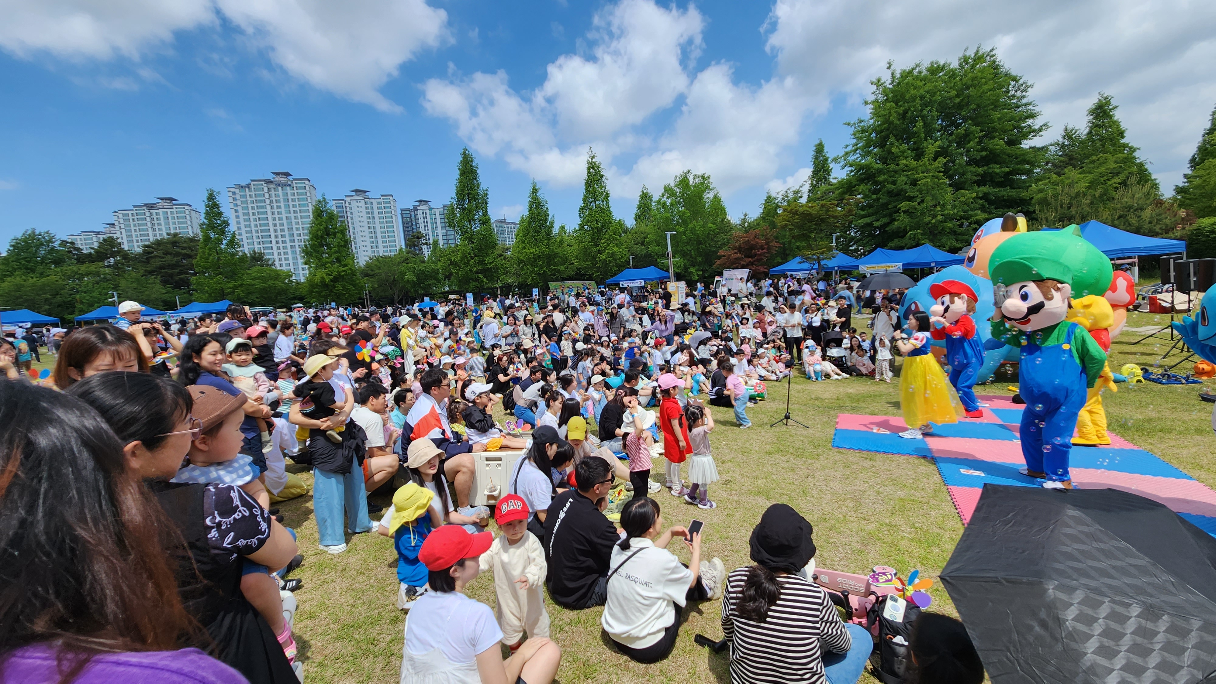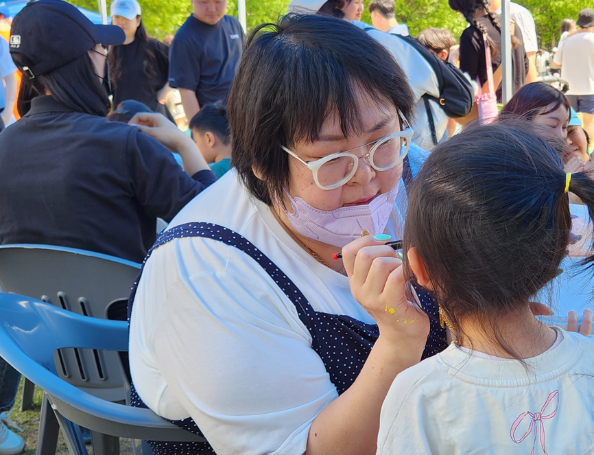 운정호수공원잔디광장 전체를 파주시 관내 영유아들을 위한 체험교육의 장으로 마련하였으며 사회복지행정과는'알록달록 페이스페인팅'이라는 프로그램을 진행하였습니다.
