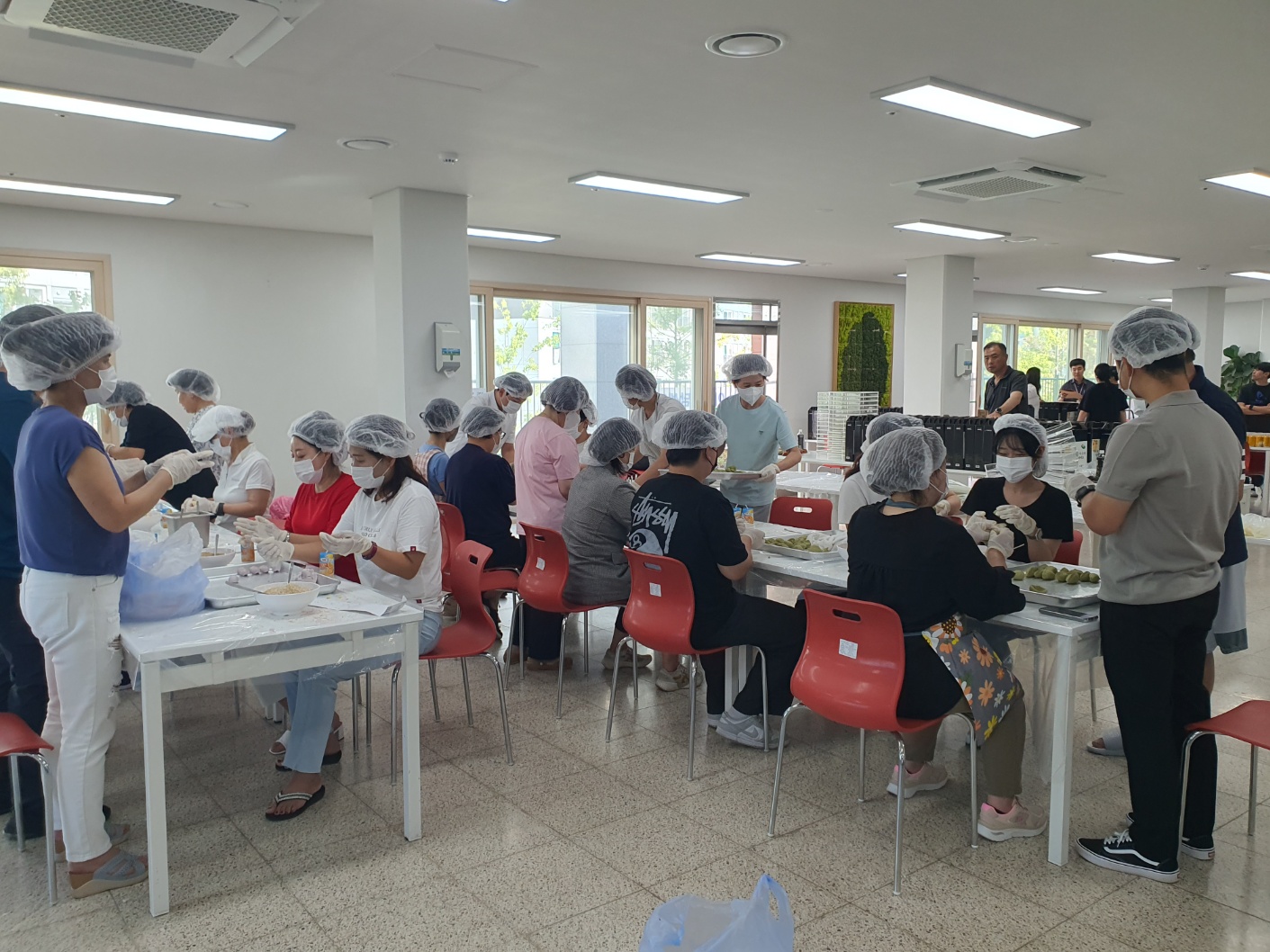 위생을 철저히 지키기 위해 위생모자와 장갑을 착용하고 송편을 빚었으며, 송편 만들기 팀, 추석 물품 포장팀, 송편 배달팀으로 나뉘어