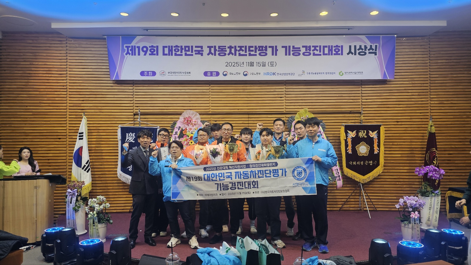 O. 우리대학(총장 김정수미래자동차과(학과장 송락현) 1115() 경기과학기술대학교에서 개최된 19회 대한민국 자동차진단평가 기능경진대회에서 학생부에서 대상(고용노동부 장관상)을 비롯한 은상, 단체상, 우수지도자 국회의원 표창장을 수상하는 영애를 안았다. 또한 현역 진단평가사 진로로 진출한 졸업생들이 참가한 일반부에서도 대상(국토교통부 장관상)을 포함한 금상, 은상을 석권하며 우리 대학의 위상을 빛내었다.